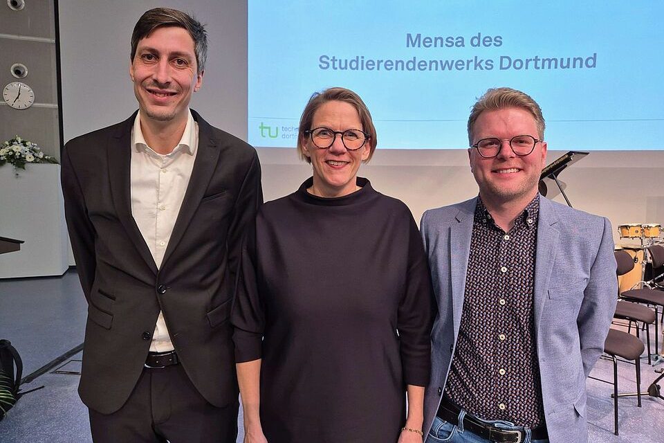 Award winners Jakob Henke and Dominik Speck with IJ professor and Vice President for Academic Affairs Wiebke Möhring.